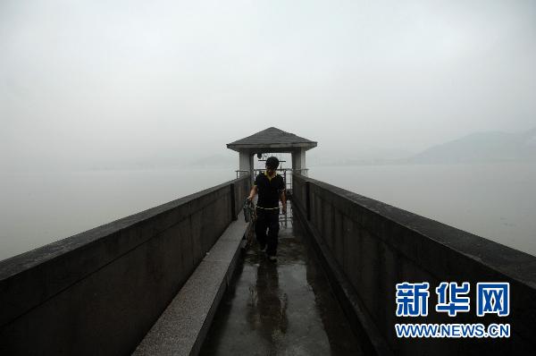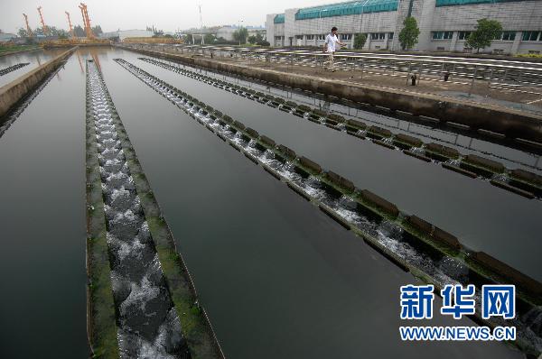 6月7日,位于钱塘江边的杭州市九溪自来水厂的工作人员在沉淀区巡查。新华社记者 黄宗治 摄