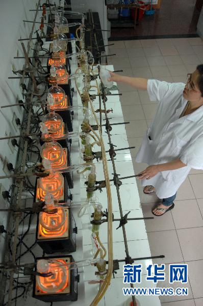 6月7日,杭州市环境监测中心站的工作人员在实验室对从8个监测点送来的水样本进行分析,整个过程需要2个小时。新华社记者 黄宗治 摄