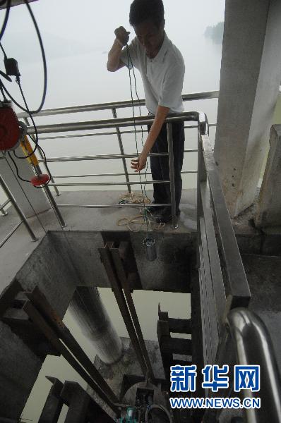 6月7日,杭州市环境监测中心站的工作人员在杭州城区钱塘江上游一处监测点取水。新华社记者 黄宗治 摄