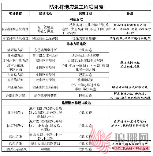 临沂防汛排涝应急工程项目表