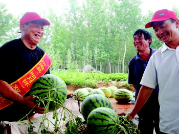 经过严格评选,双堠镇桃花峪村村民高自庆种出的西瓜勇夺冠军,他的西瓜含糖量为13.5度,是普通西瓜含糖量的1.5倍,可食率高达68%,他本人也获得了“西瓜大王”的称号。