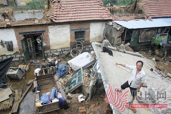 “今年夏天已经淹过两次了,心里很担心。”眼看着屋里的水越来越高,他心里惦记着猪圈里12头猪,于是走出房门,发现院子里的水已经及腰高,王敬习想把猪转移到安全的地方。没想到,还没有转移完,一声沉闷的“轰隆”声后,院墙倒下压死了一头猪,随后东平房也倒了,两间主屋也在几分钟后出现不同程度的倒塌。