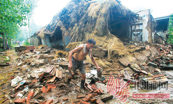 “不好,赶紧跑!”李良匆忙叫醒老伴,两人急急忙忙地跑到院子里。此时,院子里的积水已经到了李良的腰部。两人刚跑出门口不足10米,就听见背后传来“轰隆”一声,院墙塌了,紧接着,已经建了22年的土坯房房顶突然倒塌,4间房屋的北墙也轰然倒下。
