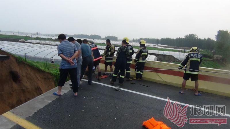 22日19时许,沂南县大部地区突发强降雨,大雨持续到23日凌晨4时许。受暴雨影响,沂南县滨河大道辛集镇房家庄子大桥突发坍塌,路经此桥的一辆宝马车和一辆奥迪轿车不慎落入河中。事故发生后,当地公安、交警、消防等部门迅速赶往现场组织施救。