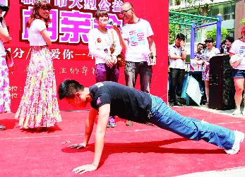 首届相亲会上,相亲者在参与互动游戏。(资料图片)