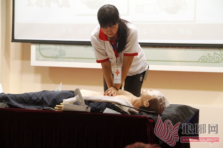 就这样,王桂玲分别对常见的烫伤、溺水、触电、急性中毒等意外灾害及火灾、地震等自然灾害进行讲解。光理论方面的知识还不“过瘾”,在初级现场救护培训中,临沂市红十字会袁佳琪讲解并演示了心肺复苏、呼吸道梗阻的急救方法、创伤的现场救护等急救知识、技能。