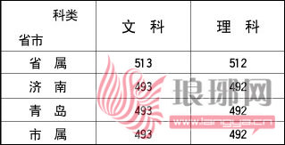 山东省2012年普通高校本科二批第一次征集志愿分数线
