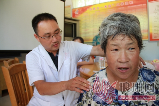 在八里庙子村,远远地看到蹒跚而来的老人,大学生志愿者们就赶紧跑上前去,搀扶着老人家到诊疗点。在诊疗现场,一头花白头发的王凤兰老大娘格外引起了大家的注意。经询问得知,原来王大娘是建国前的老党员,今年已经94岁。各科医生耐心的给老大娘分别进行了诊疗,并就大娘的健康状况现场进行会诊……时间已是下午一点多,由于早上起得早,好多人早饭也没有吃,志愿者们在高温下饿着肚子坚持为最后一位前来就诊的群众做完诊断才去吃午饭。