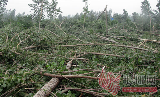 在受灾最严重的文疃镇,3小时降雨187毫米,风力8至11级,雨量大、风力高、损失严重历年来所未有。初步统计,该镇房屋倒塌123间,损坏2000余间,黄烟受灾面积2000亩,玉米倒伏2.14万亩,花生受淹1.65万亩,刮倒树木21万余棵,冲毁塘坝3座、桥涵13座,淹死生猪540头,大风致使670亩苹果树、3100亩桃树落果率达70%,累计经济损失4000余万元。本次受灾直接经济损失严重,无人员伤亡。