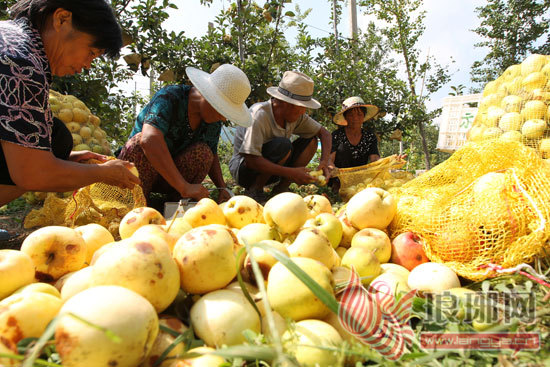 之后,记者一行经过了一片苹果园,果园里几名果农正在将成片的被台风刮落的苹果装袋,采访中记者了解到,这里是沂水镇友兰官庄,这片占地300多亩的果园是友兰官庄村联合附近几个村子共同承包、管理的精品苹果园,主要种植品种为红露苹果。“再有一个多星期就能上市了,眼看着到手的钱就这么没了,心疼啊!”友兰官庄村主任张庆录看着满地的落果眼圈微红,他说,当时台风来袭时他就在果园旁边的小屋里,眼睁睁地看着已经摘袋上色的苹果被大风和暴雨肆意地摧残,但毫无办法。“上市后能卖到3元钱一斤的苹果,现在找人收拢起来之后2毛一斤卖给了果汁加工厂,没办法,再不卖掉就得全部烂在园里。”张庆录告诉记者,从3日下午到现在,已经卖掉了2000多斤的落果,树上剩下的苹果已不足半数,而且由于被大风袭击后,与树枝发生摩擦,大多数都带了伤,即使能长成也已经卖不上好价格。