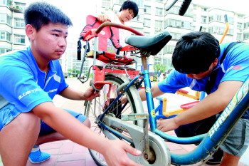 8月4日,在本报与路可秀单车运动俱乐部联合推出的“社区直通车”免费修自行车活动中,志愿者们在两个小时内,共为活动举办地点——市区埠东花园居民修理好了40多辆自行车、童车和三轮车。