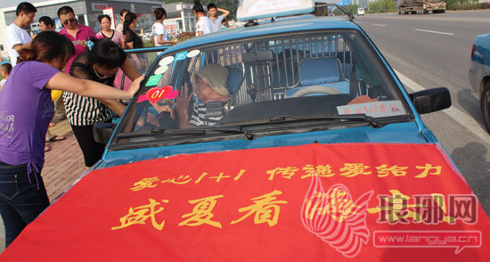 8月5日,胡彩霞乘坐王乐福的出租车奔赴日照。同行的还有“爱心1+1”车队的其他的哥的姐们和他们的孩子。从临沂到日照,一路感动随行,“我真的觉得太幸福了……我会更坚强……”