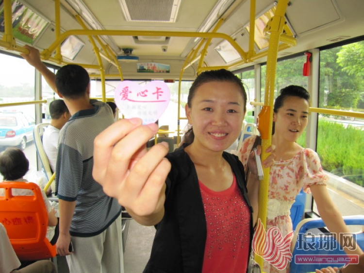 “您好,这是送给您的爱心卡。”看到这种情况,公交公司跟车的志愿者上前说明来意,并将爱心卡送到她手中。“我只是一个习惯动作,没想到还能得到意外奖励。呵呵,挺很开心的。”让座的女士姓张,接受这张卡后,她高兴地放在了包里。