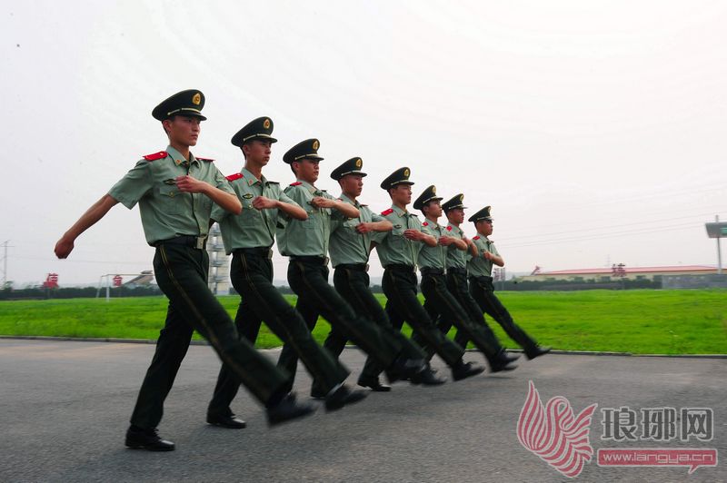 队列训练的官兵深知步调一致的重要性。