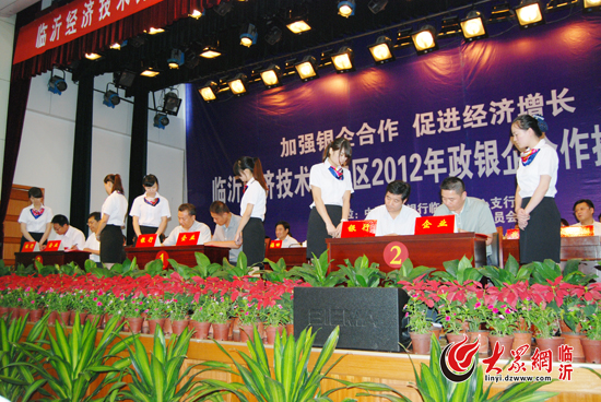 今天上午,人民银行临沂市中心支行与临沂经济技术开发区管委会联合举办“加强银企合作 促进经济增长 2012年政银企合作推进会”。此次推进会,临沂经济技术开发区共有61家单位与银行达成了信贷合作意向,签约金额达82.8亿元。 据了解,此次政银企合作推进会议,是今年以来的第11次县域政银企合作推进会,也是临沂市第19次政银企合作推进会。主要目的为加强金融机构和政府、企业的合作,解决企业融资障碍,推进开发区经济快速发展。在推进会上,农业发展银行临沂分行与山东立晨物流股份有限公司、工商银行临沂分行与山东美多集团有限公司、农业银行临沂分行与山重建机有限公司等多个相关单位签订了合作意向书。