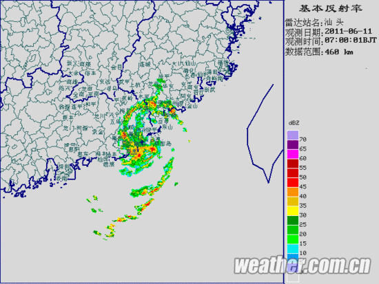 中央气象台2011年6月11日06时继续发布台风蓝色预警: