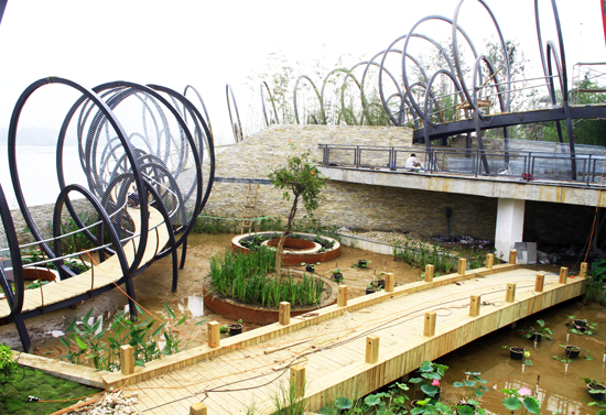 截止目前,园博园公共部分绿化乔灌木、球类、模纹、草坪等栽植基本完成,共栽植乔木2000余株,灌木3506株,花卉36179平方米,色带12000平方米,草坪72000平方米,水生植物5320平方米,其中乡土树种占95%。