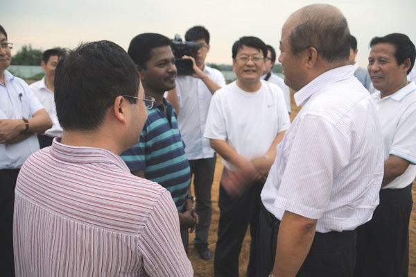 张少军书记在视察科技软件园项目时, 仔细听取了拓普网络有限公司总经理王岚保汇报的“鲁南中印软件园”项目介绍和企业发展前景,极大关注了“鲁南中印软件园”的筹备建设情况,要求开发区对进园项目在政策上进一步给予优惠,并与拓普网络公司引进的印度籍专家BABU亲切交流,鼓励他们努力工作,为临沂市软件业的发展做出贡献。