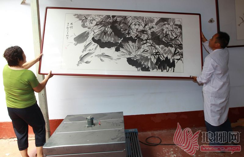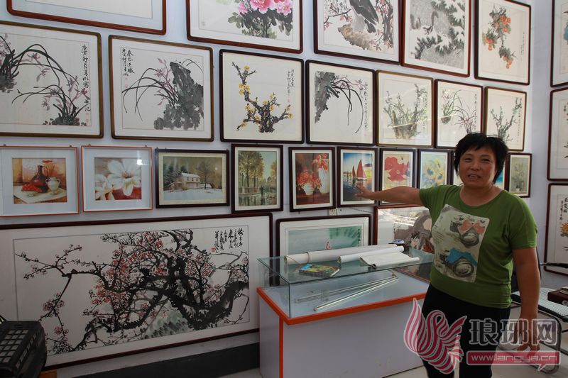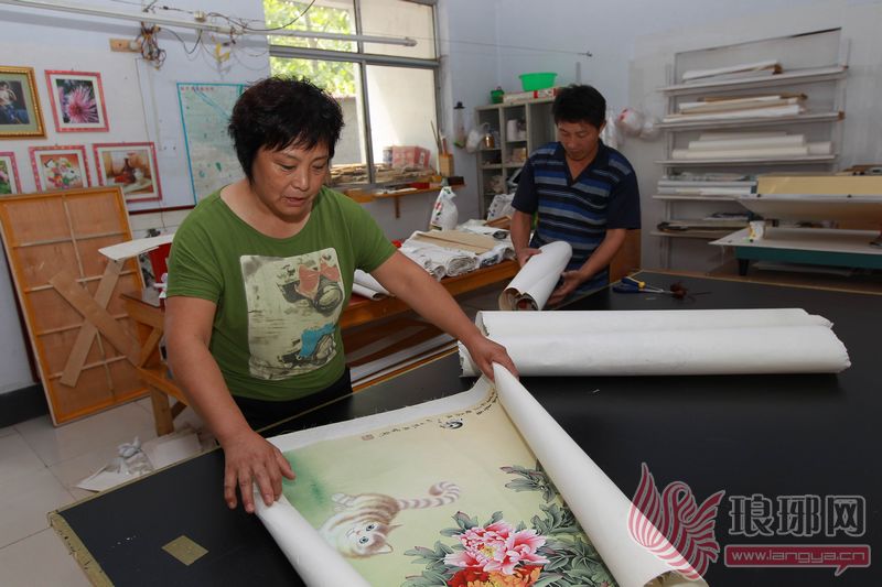史宝娣说,几十个工人一年可加工画框10万个,产品销往上海、福建、安徽、河南等地,另外她还提供画、裱、框、装等一条龙服务。市民或游客来此,可根据他们的要求现场作画并装裱。