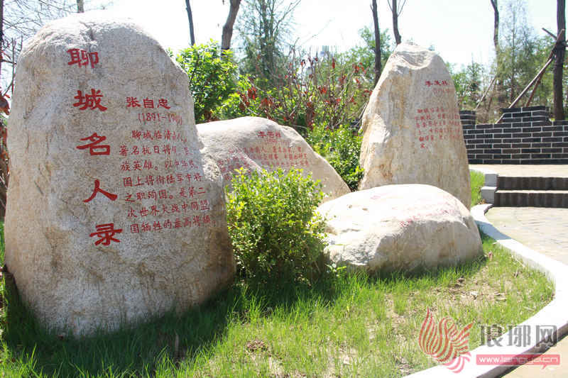 除了突出葫芦,在园区的左边,设计师还专门开辟了以聊城名人石刻为主题的休憩空间,雕刻有武训、傅斯年、张自忠、季羡林、孔繁森、李苦禅、张海迪这七位名人的生平事迹。