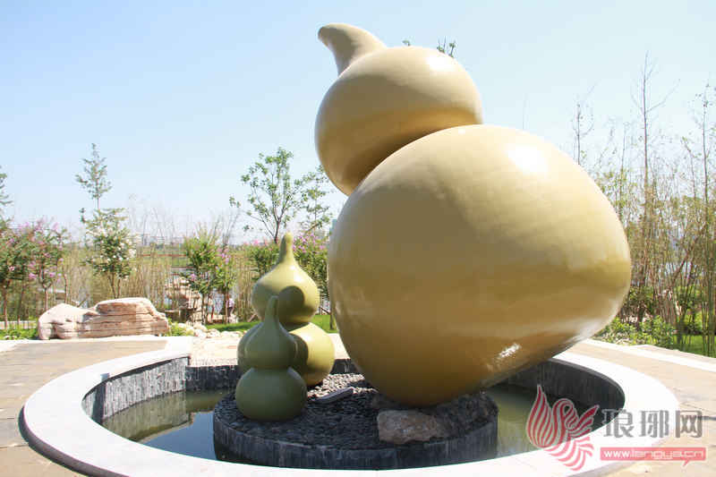琅琊网8月29日讯(记者张娜 通讯员王桂红)站在聊城园的门口,园区中心的巨大葫芦雕塑格外引人注目,在这个高约3.5米,直径2.5米的大葫芦周围,还围绕着两个小葫芦,一股清泉从大葫芦葫柄处涌出,顺其而下,沐浴着小葫芦。