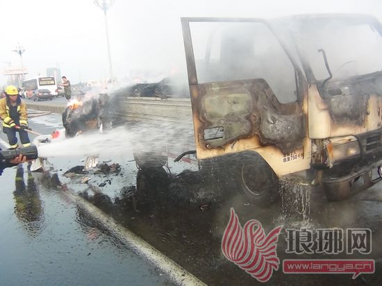 8月30日下午5时30分,一辆载着纸箱的货车沿着光耀大桥自东向西行驶时,突然自燃,所幸没有人员受伤,事故造成该路段出现拥堵。