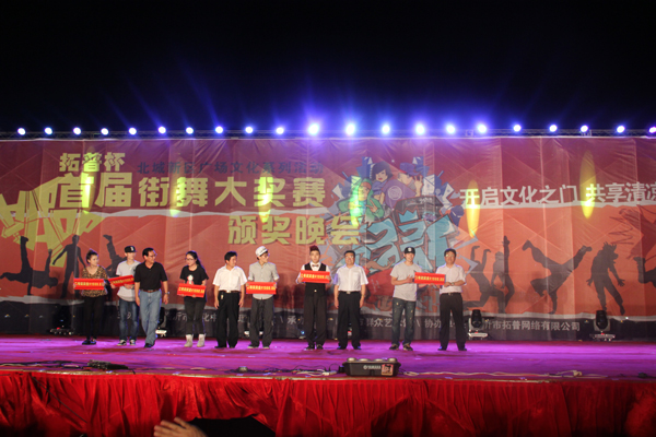 临沂网讯 2012年8月31日,由市文化中心管理办公室主办、临沂市拓普网络有限公司协办“拓普杯”首届街舞大奖赛颁奖晚会在文化广场隆重举行。