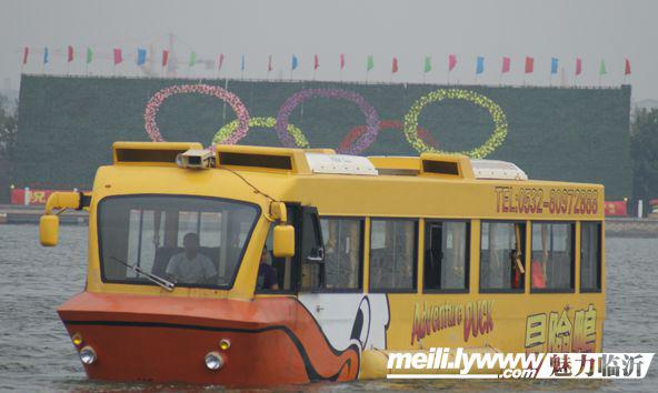 临沂网讯(韩继飞)6月10日上午,水陆两栖巴士“冒险鸭”在临沂市风帆广场沂河水域下水试航,滨河景区将引进大型水上娱乐项目。6月7日水陆两栖巴士“冒险鸭”从青岛出发,前往'"大美水城"临沂,为临沂的滨河旅游开发献力。目前,在沂河南岛西侧风帆广场“冒险鸭”专用下水通道正在紧张施工,近日将试运营,届时,广大市民可到场体验刺激开心的海陆冒险之旅。