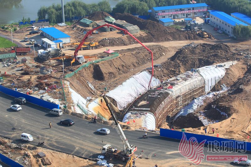 4日早晨7:40,正是交通高峰期,车流量较大。记者开车由南向北驶入滨河路三河口隧道施工处新修的车道。车道左侧有大型施工车辆正在作业,右侧围栏后面施工也在正常进行。新车道很宽敞,可容两辆车同时通行。