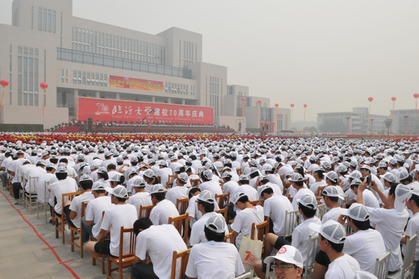 据现场报告,迟浩田将军为临沂大学刚刚出版的校史作序。校庆前夕中华人民共和国教育部向我校70周年校庆发来贺信,中国高等教育学会会长、教育部原副部长周远清同志在现场宣读教育部贺信。