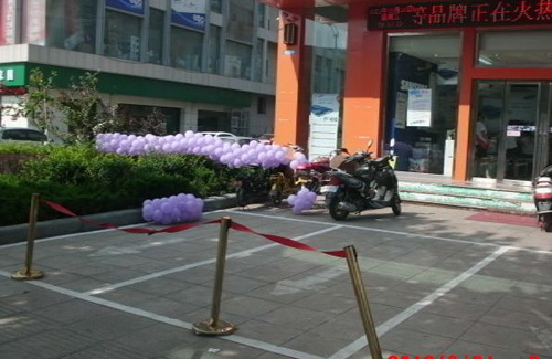 某商家用隔离带挡住停车位