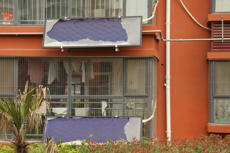 13日上午9时许,家住双岭路与琅琊王路交会处八里屯社区的市民曹先生拨打本报热线反映称:小区阳台外的壁挂式太阳能的集热板不知怎么回事被砸坏了,而且一连砸坏了5个,至今没人前来处理。