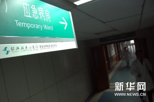 绍兴县中心医院的应急病房已经准备了48张床位收治血铅超标人员,目前已有12人入院进行驱铅治疗(6月9日摄)。
