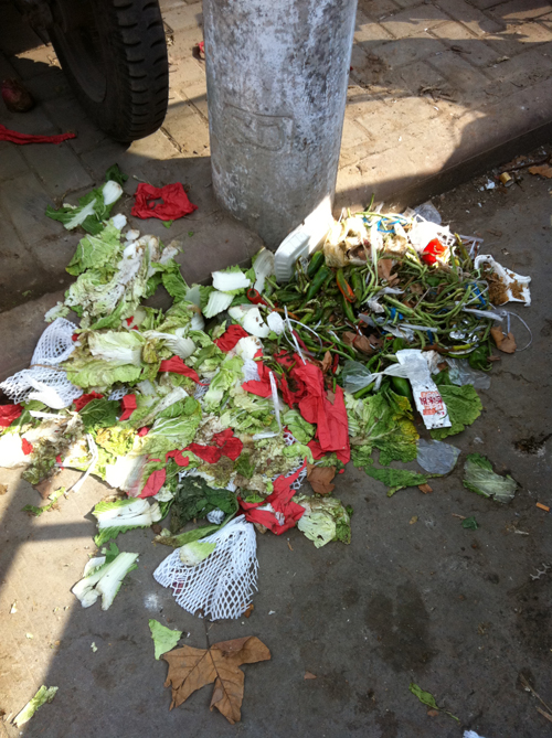 道路随处可见的果蔬垃圾