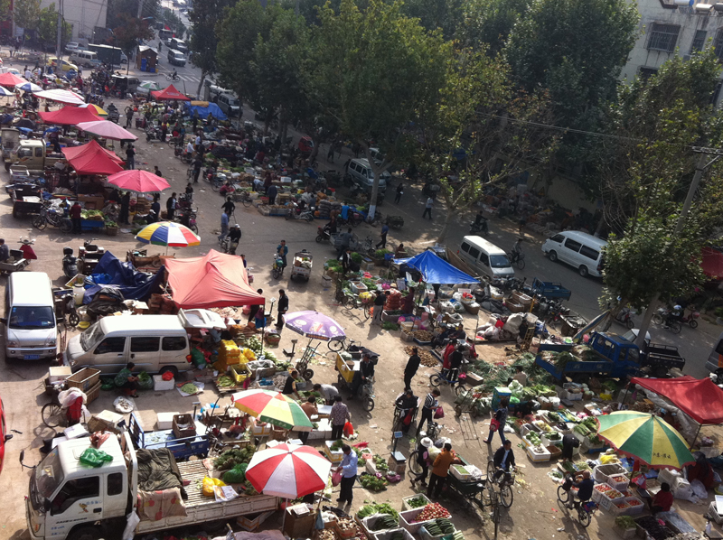 农贸市场停车场也被商贩们占据