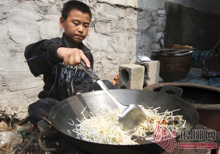 当同龄的孩子睡梦正酣时,他在洗菜,做饭;