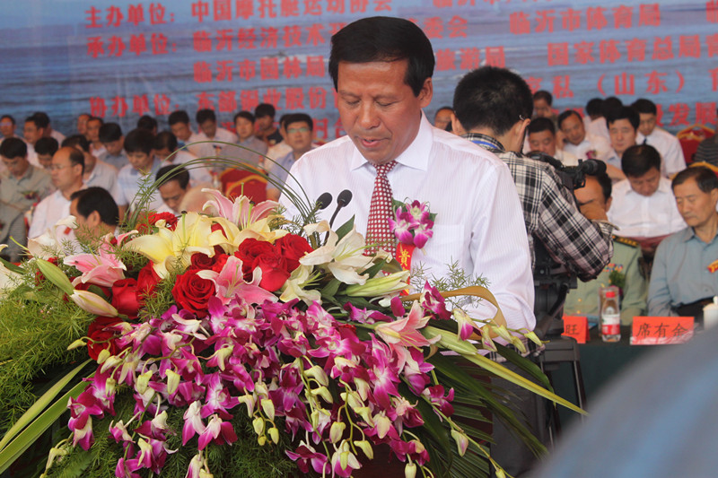 边峰在讲话中指出,临沂经济技术开发区作为赛事的具体承办地,积极主动,优质高效地完成了前期各项筹备工作,为大赛成功举办奠定了坚实的基础。相信在社会各界的高度关注和热情参与下,这次国际水上摩托大赛一定会成为一次展现技艺、促进交流的体育盛会,成为一次加深了解、增进感情的友谊盛会。