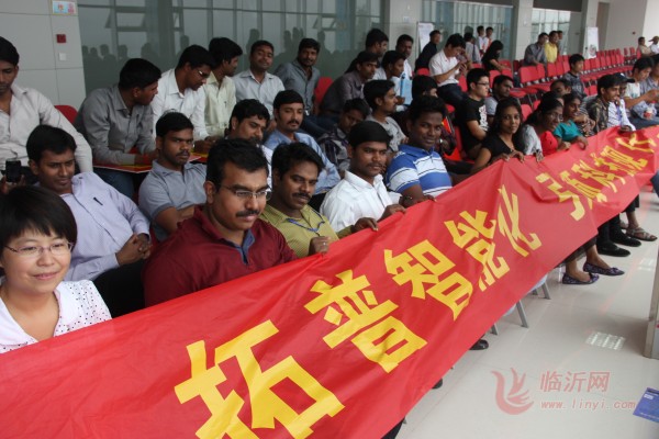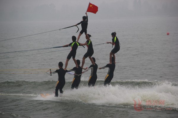 临沂网讯 9月21日, 2012中国临沂“临商银行”杯国际水上摩托大赛开幕式在沂河南部F1场馆隆重举行。开幕式上,激情动感的水上摩托和滑水特技表演精彩纷呈,赢得观众阵阵欢呼。来自临沂市拓普网络有限公司的40余名印度籍专家团队也赶来为运动员加油助威,成为现场观众席上的一大亮点。