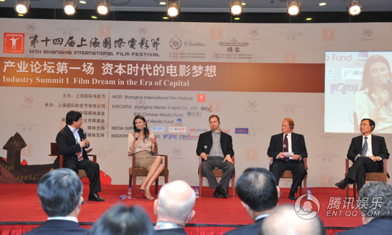 腾讯娱乐讯 6月12日,第14届上海国际电影节迎来第一场产业论坛,本次产业论坛的主题围绕着资本时代如何更好地把资本与市场结合。在面对2010年中国电影票房突破100亿、中国电影产业的产能与投资规模达到前所未有的集合性增长,而生产力与影视者的创作力却并未同步跟上,在这种情况下,各大影视公司都希望能通过IPO的途径来扩大产能。但这种蜂窝式地“圈钱”方式并不是解决问题的最佳方式。上海国际电影节产业论坛第一场高峰论坛,电影节组委会也请来了全球影视业的投资大腕,包括全球影视“标杆”默多克,腾讯总裁刘炽平,Big Feet Productions联合行政总裁邓文迪,华谊兄弟CEO王中军以及博纳CEO于冬等影视界大腕,齐聚论坛,一起共同探讨在资本时代的电影梦想该如何延续。