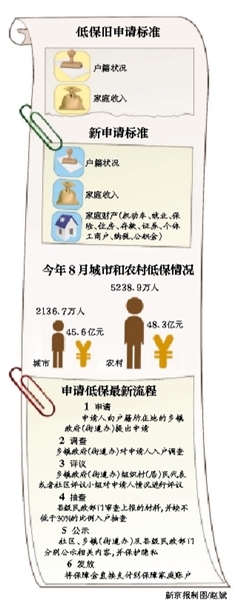 我国延续10余年的低保政策正式调整。除必要的家庭收入审核外,股票、房产、汽车等家庭财产,也成为认定低保对象的基本条件。同时,低保家庭成员、收入情况、保障金额等在其居住地长期公示,但要保护个人隐私。