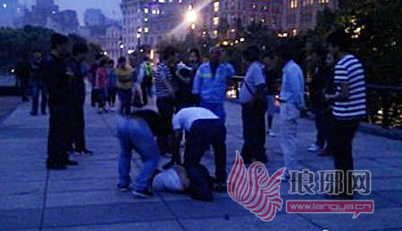 9月21日下午5点56分,在上海中山东一路外滩江堤处,面向东方明珠有一排木质休息台,马光峰、李建、陆胜乾、李爱华和两名济南的朋友正在拍照,突然,他们听到一声尖叫,只见在离他们七八米远的地方,一名十八九岁的女孩被一名30多岁的持刀男子紧紧抓着,女孩的左胸鲜血直流,而那名男子马上又朝她扎了一刀,女孩立即软绵绵地倒在了血泊中。