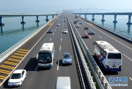 10月1日,车辆行驶在青岛胶州湾大桥上。