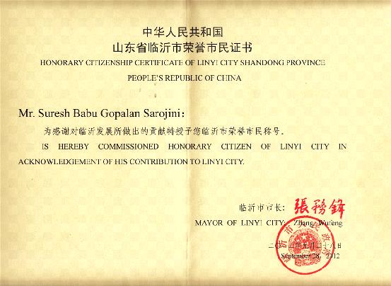 拓普网络公司印度籍专家BABU先生荣膺“临沂市荣誉市民”,这体现了拓普公司崇尚知识、尊重人才的做法,赢得了市委、市政府的肯定。