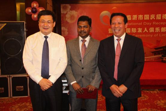 临沂网讯 9月28日,临沂市国庆招待会暨临沂国际友人俱乐部成立大会在陶然居隆重举行,市委书记、市人大常委会主任张少军致辞,市委副书记、市长张务锋为获得“临沂市荣誉市民”称号的外国友人颁发证书,张少军和张务锋共同为临沂国际友人俱乐部揭牌。林国华、李沂明、徐福田、孙丰刚、边峰、王晓嫚、谭庆功等领导同志出席。