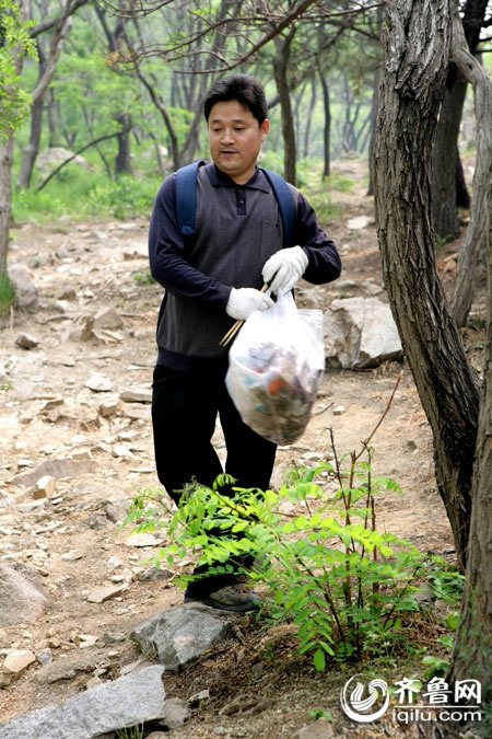 随后,记者通过电子邮箱与kelit取得了联系,他透露说,“环保哥”姓王,上世纪60年代生人,青岛人,在一家金融单位工作,“人家是白领,捡垃圾不是为了卖钱,纯粹是一种公益之心。 ”据他估算,这7年间,“环保哥”至少上山1000次,带下山的垃圾至少有3吨,“他走的山路加起来也赶上两万五千里长征了。捡的多是塑料袋、矿泉水瓶、玻璃瓶、方便面盒等不可降解的垃圾,堆起来的话,也得有三四座垃圾山了。 ”
