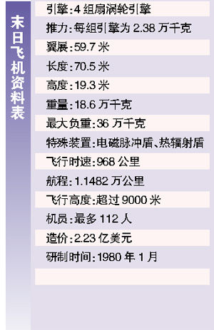 其实,美军在1980年1月就研制出这种飞机,但一直没有对外公布。按计划,一旦遭遇核袭击,美国军政高官会分三组从华盛顿搭乘“末日飞机”,逃往美国境内三个不同的地点。该飞机可在任何时候接到指令后,5分钟内起飞。