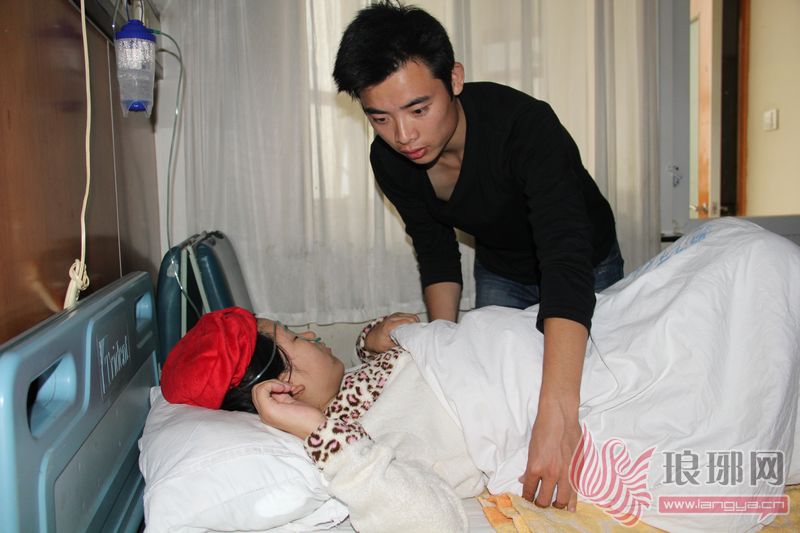 邹文博在床前给妻子王广兰掖着被角。