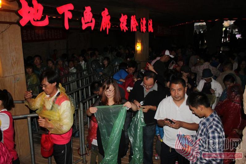 今年“十一”黄金周期间,游客们在沂水天然地下画廊体验地下漂流的刺激。