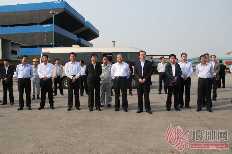 10月12日上午,张少军带领考察团在烟台市大宇造船海洋(山东)有限公司考察。(付然锋 摄)