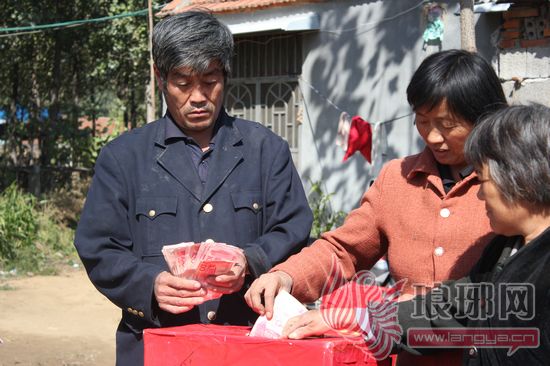 17日上午,得知林琳病情后,十里八村的村民也纷纷赶了过来,你五十,他一百,短短一两个小时的时间,爱心款已经达到了12111元,而带头捐款的正是沂蒙新红嫂戚洪桂。当她把400块钱爱心款投到爱心箱后,她还站在爱心箱旁边唱起了《爱的奉献》,而另一位村民也和她一样捐款后一起唱起来歌,以此来感谢这些爱心人对这个特殊家庭的慷慨相助。